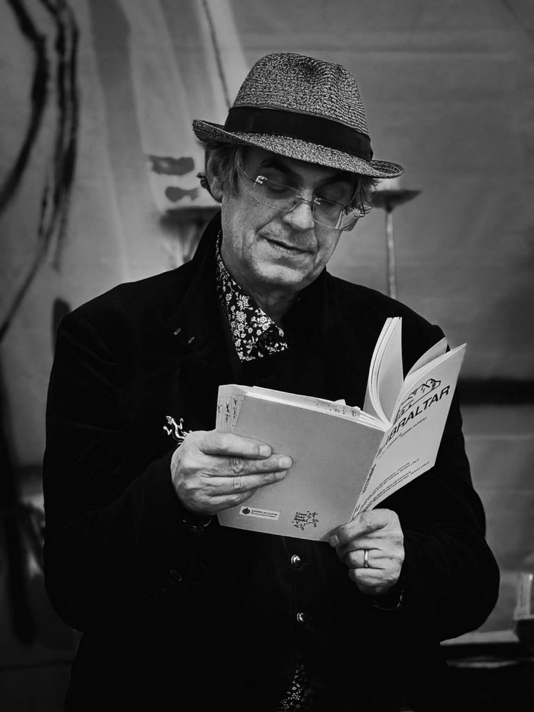 El artista y su editor alternan la gira con otros eventos, como el encuentro online organizado por la Universidad de Udine (Italia) dentro del ciclo ‘Poéticas Anfibias / Poetiche Anfibie’, en el que fueron entrevistados por Marisa Fernández Pérsico, escritora y profesora de Lengua y Traducción española e esta universidad [1]. Gabriel Moreno habló de cómo el castellano y el inglés se mezclan de tal manera en el corazón de los gibraltareños, que finalmente explotan para crear un universo de palabras en continua expansión.