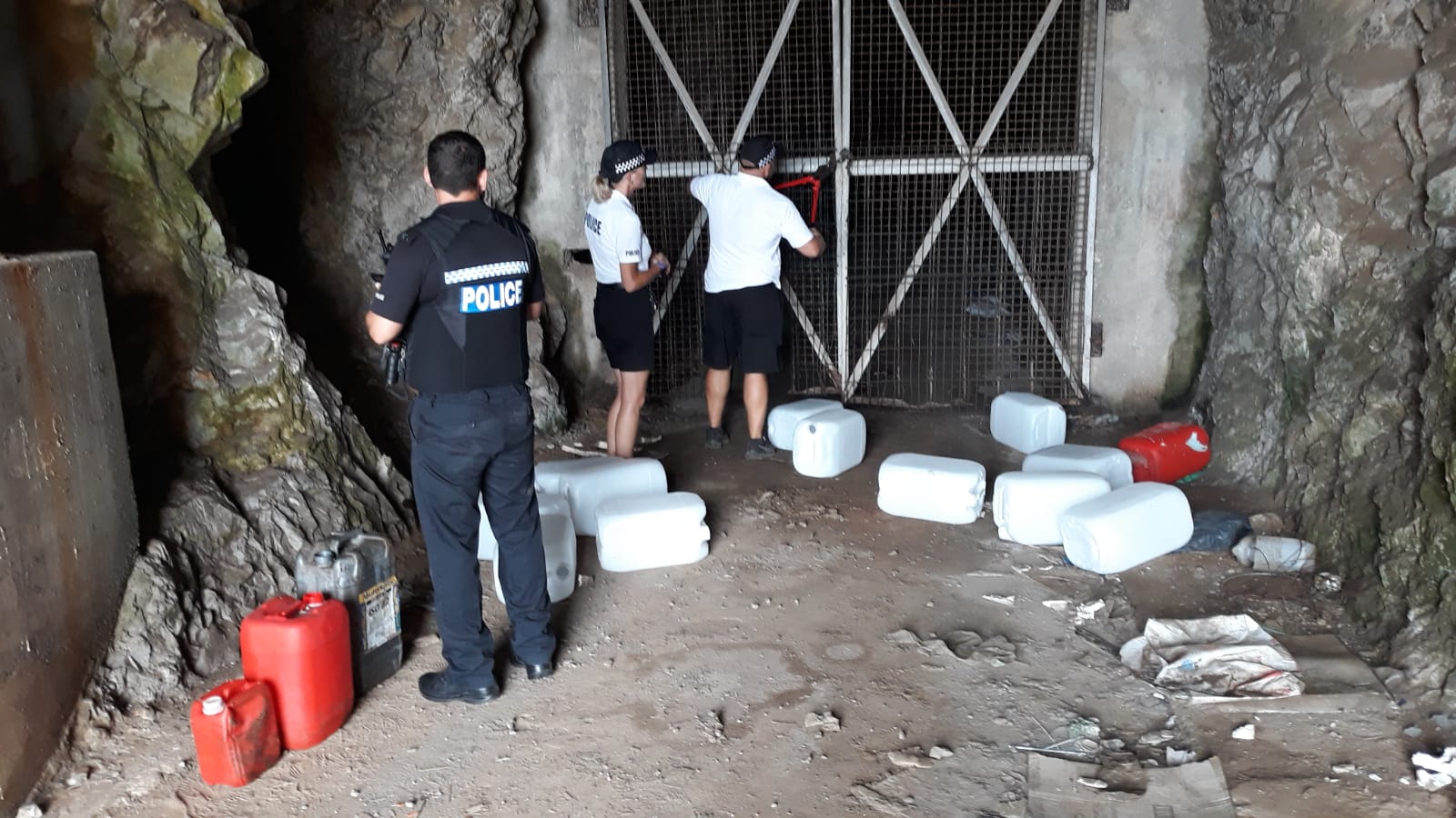 Los agentes de la PolicÃa Real de Gibraltar han encontrado esta tarde un gran alijo de contenedores de combustible en Europa Point.