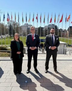 Feetham, en el centro, con Annette Perales (National Coordinator Delegate, MONEYVAL) y Nicholas Peliza (del Ministerio de Justicia), en Estrasburgo -2