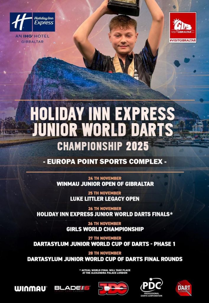 Durante cinco dรญas, 265 jugadores de 21 paรญses participarรกn en una serie de torneos de dardos, que culminarรกn con la jornada final del viernes. Todas las partidas se disputarรกn en el Complejo Deportivo Europa (Europa Sports Complex) y forman parte de la colaboraciรณn continua entre la Junior Darts Corporation (JDC), la Asociaciรณn de Dardos de Gibraltar (Gibraltar Darts Association, GDA) y la Autoridad de Ocio y Deportes de Gibraltar (Gibraltar Sports and Leisure Authority, GSLA).